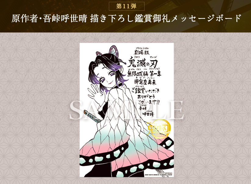 来場御礼入場者特典 第11弾 「原作者・吾峠呼世晴 描き下ろし鑑賞御礼メッセージボード」が配布予定です。